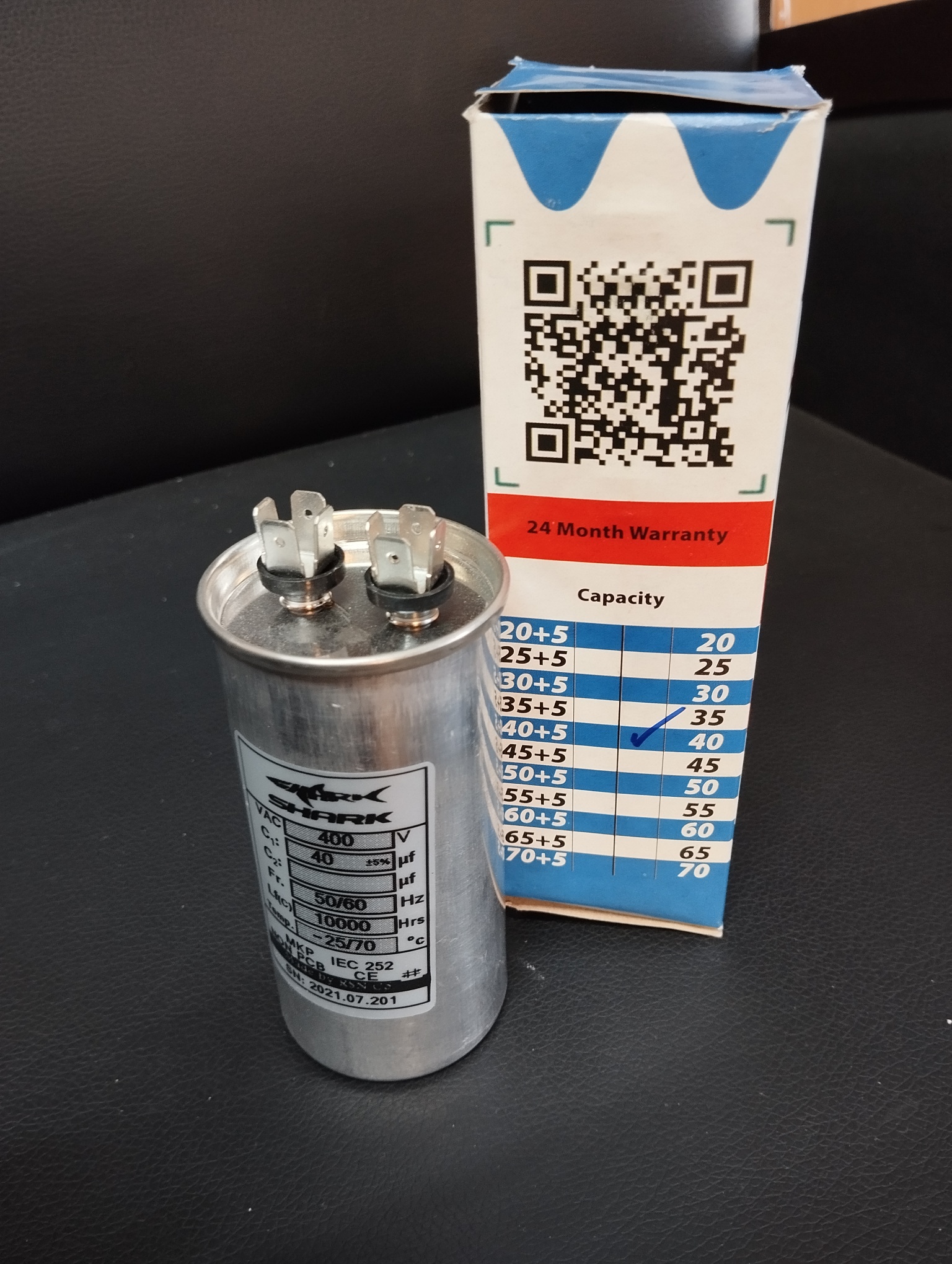 خازن کولر گازی ۴۰ میکروفاراد۲۶۵٬۰۰۰ 3%
